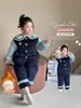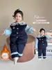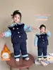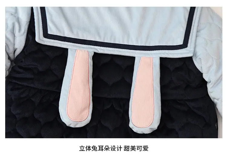 Conjunto de Pijama Infantil de Três Camadas Acolchoado Espessado para Inverno Roupa de Casa Quente de Coelho Policial para Inverno