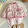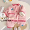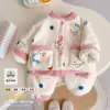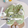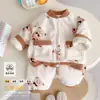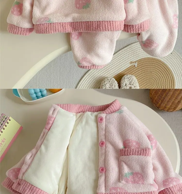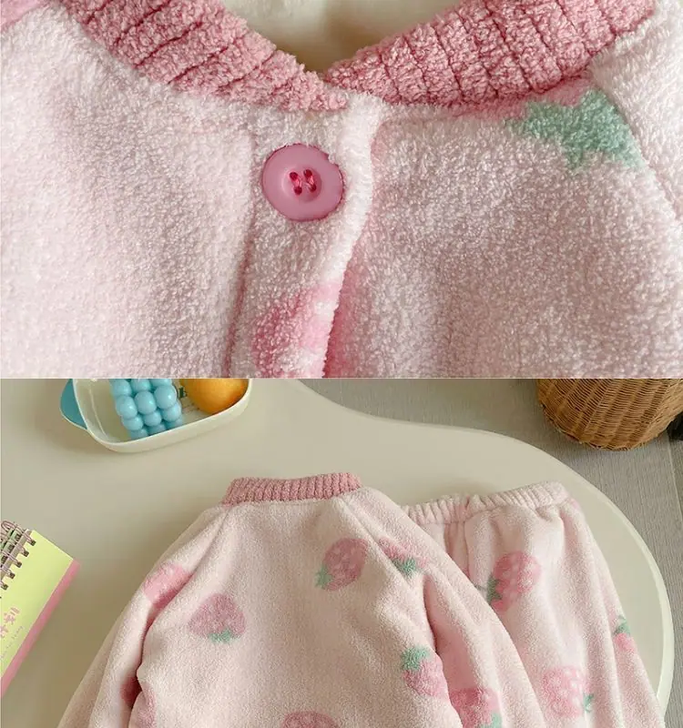 Pijama Feminina Veludo Coral Camada Dupla Forrada com Lã Grossa Conjunto Bebê Quente Flanela Roupa de Casa Estilo Inverno Infantil