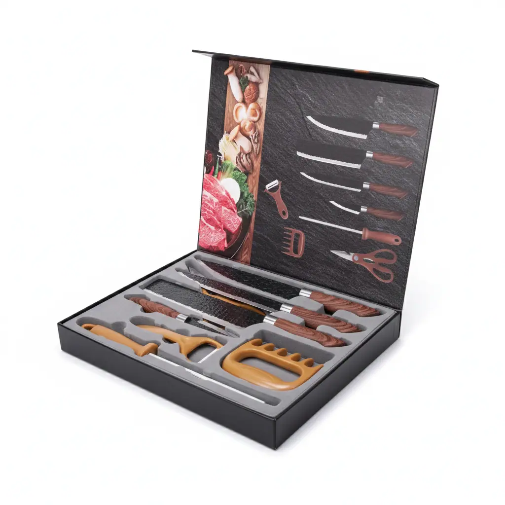 Durabilidade Robusta e Resistência à Deformação Construídas em aço inoxidável de alta qualidade, estas ferramentas são projetadas para resistir ao empenamento e à deformação. Eles mantêm sua forma e fio mesmo sob uso intenso em cozinhas domésticas ou de restaurantes movimentadas.