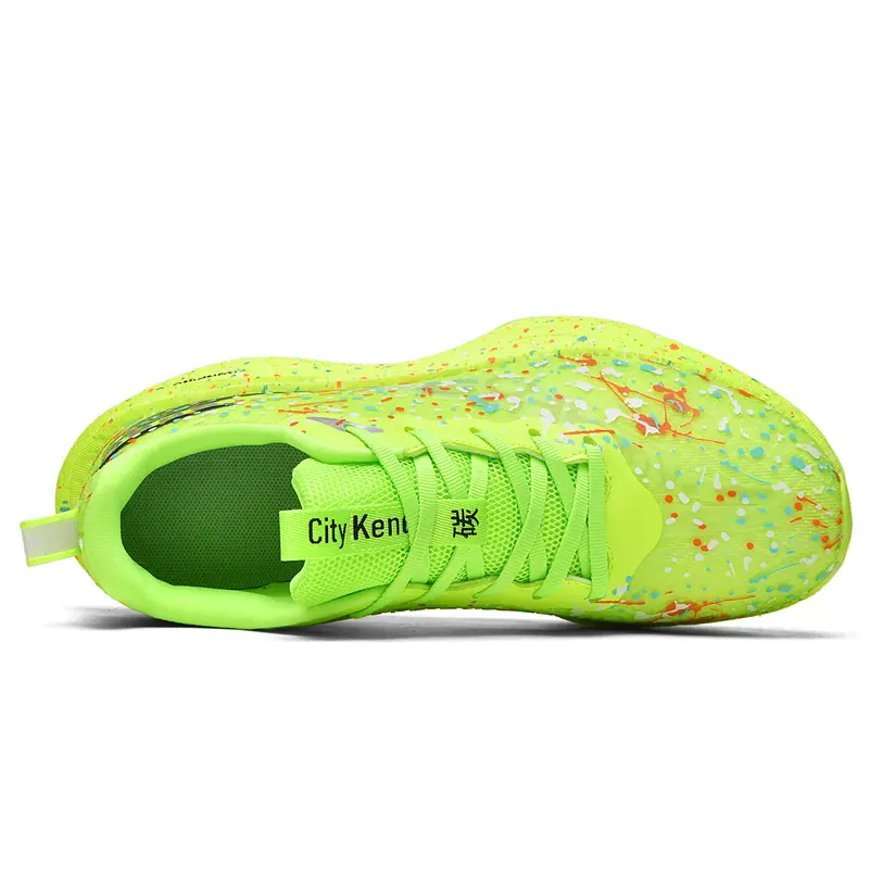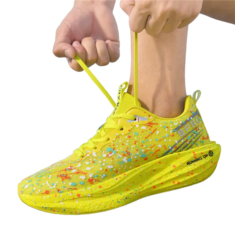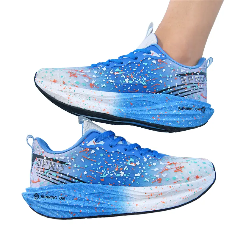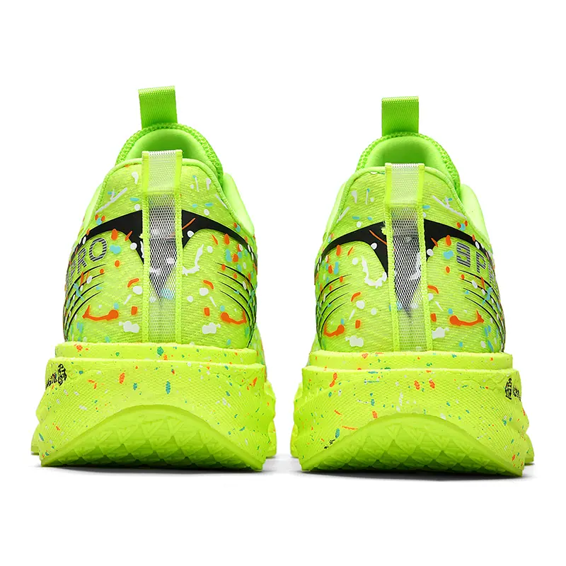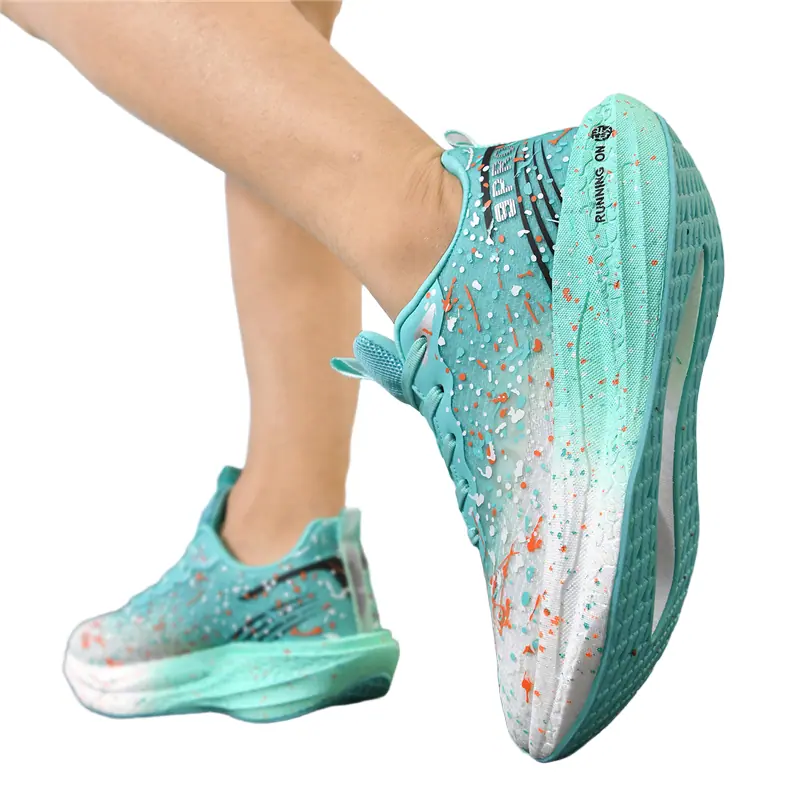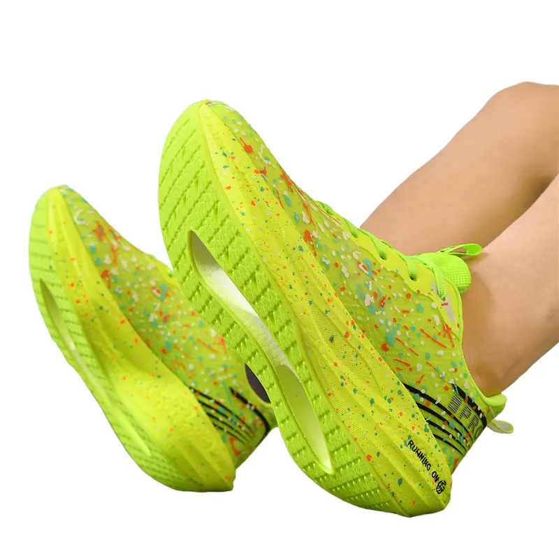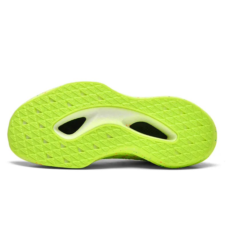- Cabedal: superfície de malha tecida respirável + malha grande, adequada para treinos de alta intensidade, não cobre os pés e é durável;