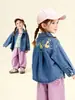 Amila Kids 2026 Primavera Nova Camisa Jeans Lavada Macia com Estampa de Letras para Meninas Jaqueta Casual Versátil