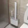Escova de vaso sanitário de silicone não porosa montada na parede cabo longo com base drenagem escova de limpeza de vaso sanitário