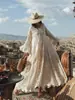 Estilo Europeu Torre de Marfim Indústria Pesada Estilo Francês Férias Boêmia Crochê Vazado Vestido Tricô Solto Blusa Saia