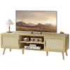 Armário de TV Popular Escandinavo Personalizado Transfronteiriço Suporte de TV Armário de Armazenamento de TV de Rattan Pés de Madeira Maciça 4 Furos para Fios