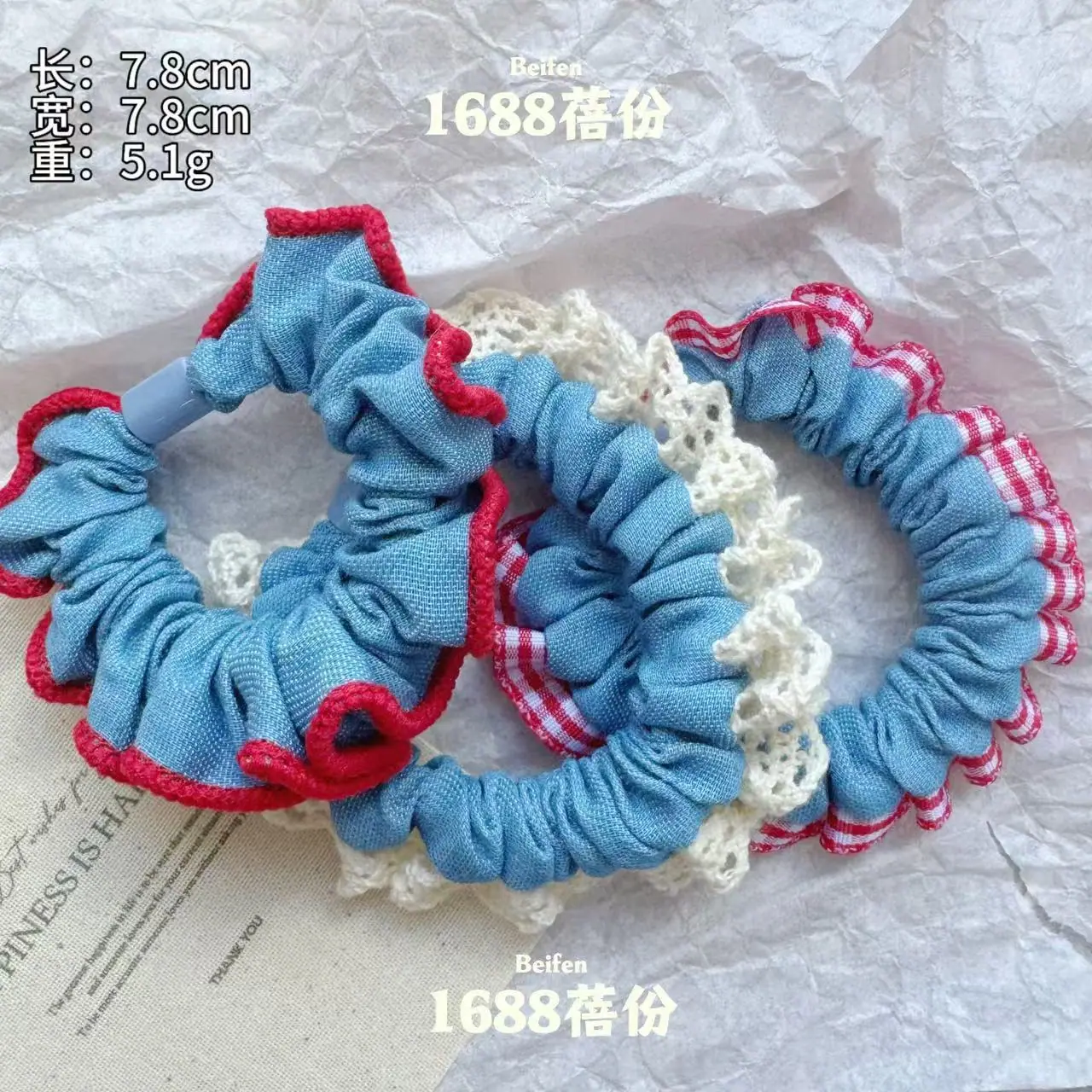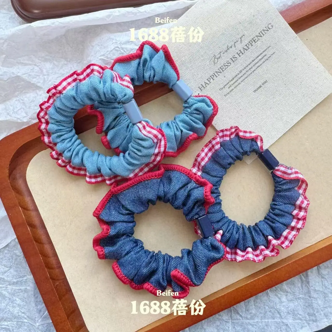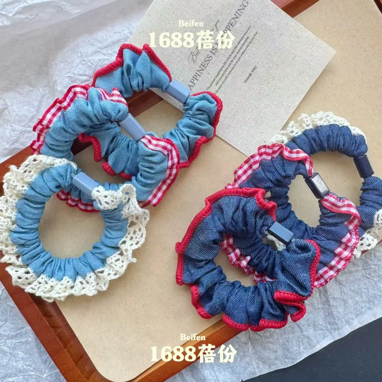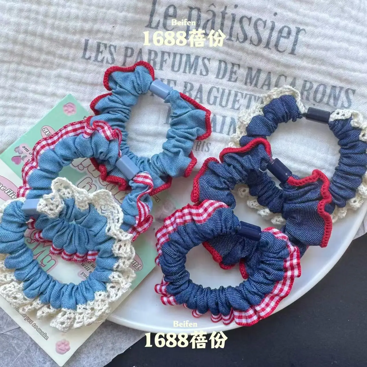 Lace edge denim small intestine loop [dark color], Lace edge denim small intestine loop [light color], Plaid e...