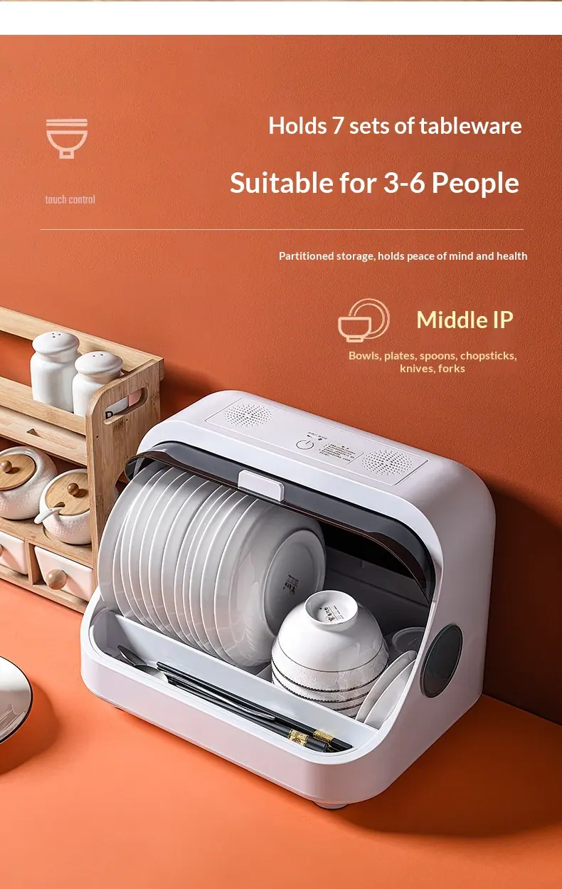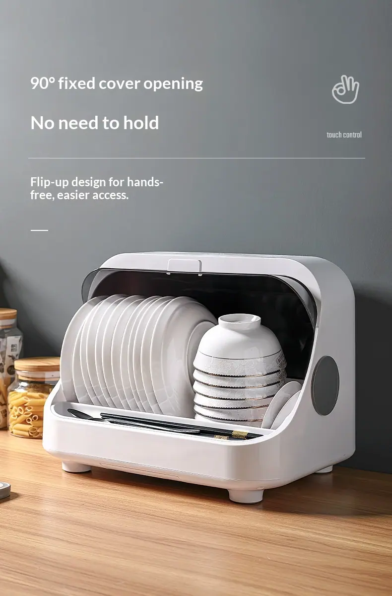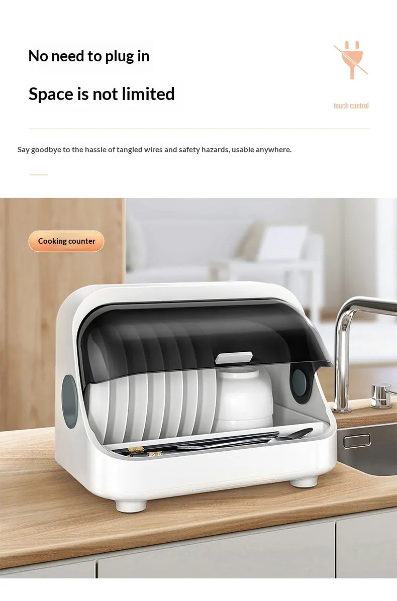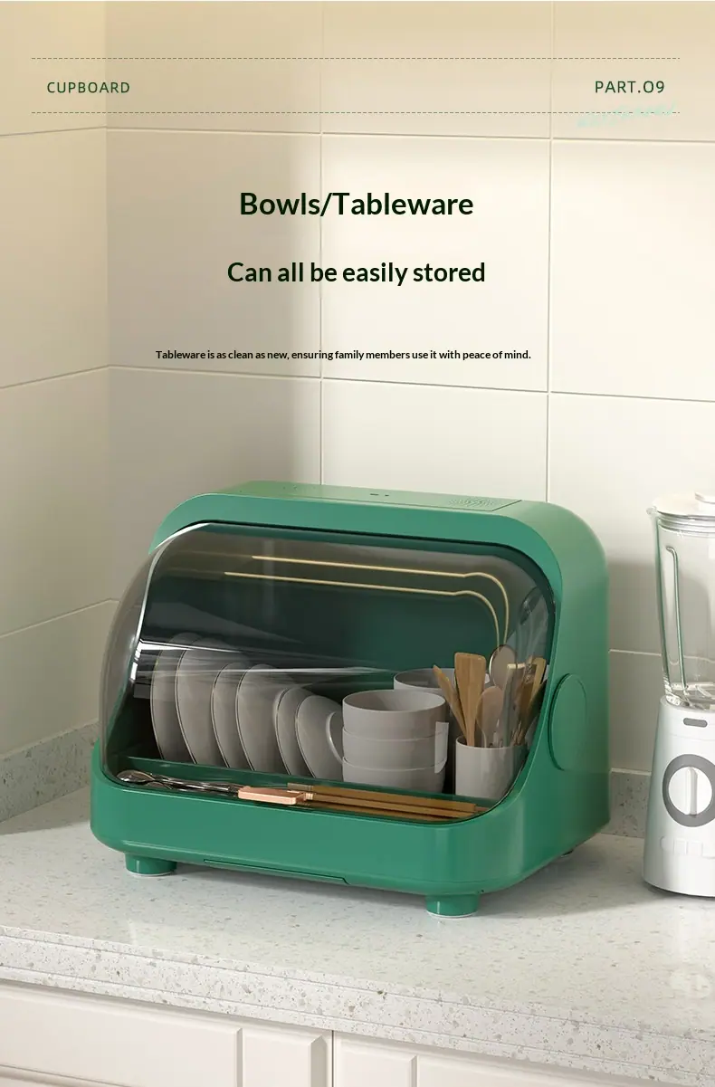 Este é um escorredor de louça de cozinha multifuncional que integra armazenamento, drenagem e desinfecção. Com um design moderno e simples, pode organizar eficientemente tigelas, pratos, pauzinhos, colheres e outros utensílios de mesa na cozinha, manter a bancada limpa e seca e inibir eficazmente o crescimento de bactérias, tornando-o uma escolha ideal para melhorar a higiene da cozinha e a utilização do espaço.