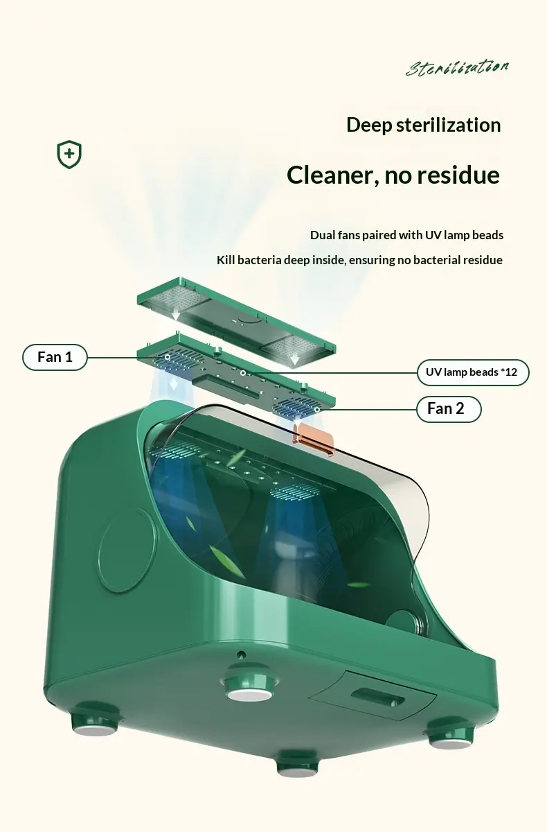 Suporte para Tigela de Desinfecção (Modelo Ouro Verde/Platina): Integra função de desinfecção ultravioleta na base de drenagem para proteger a saúde da família.