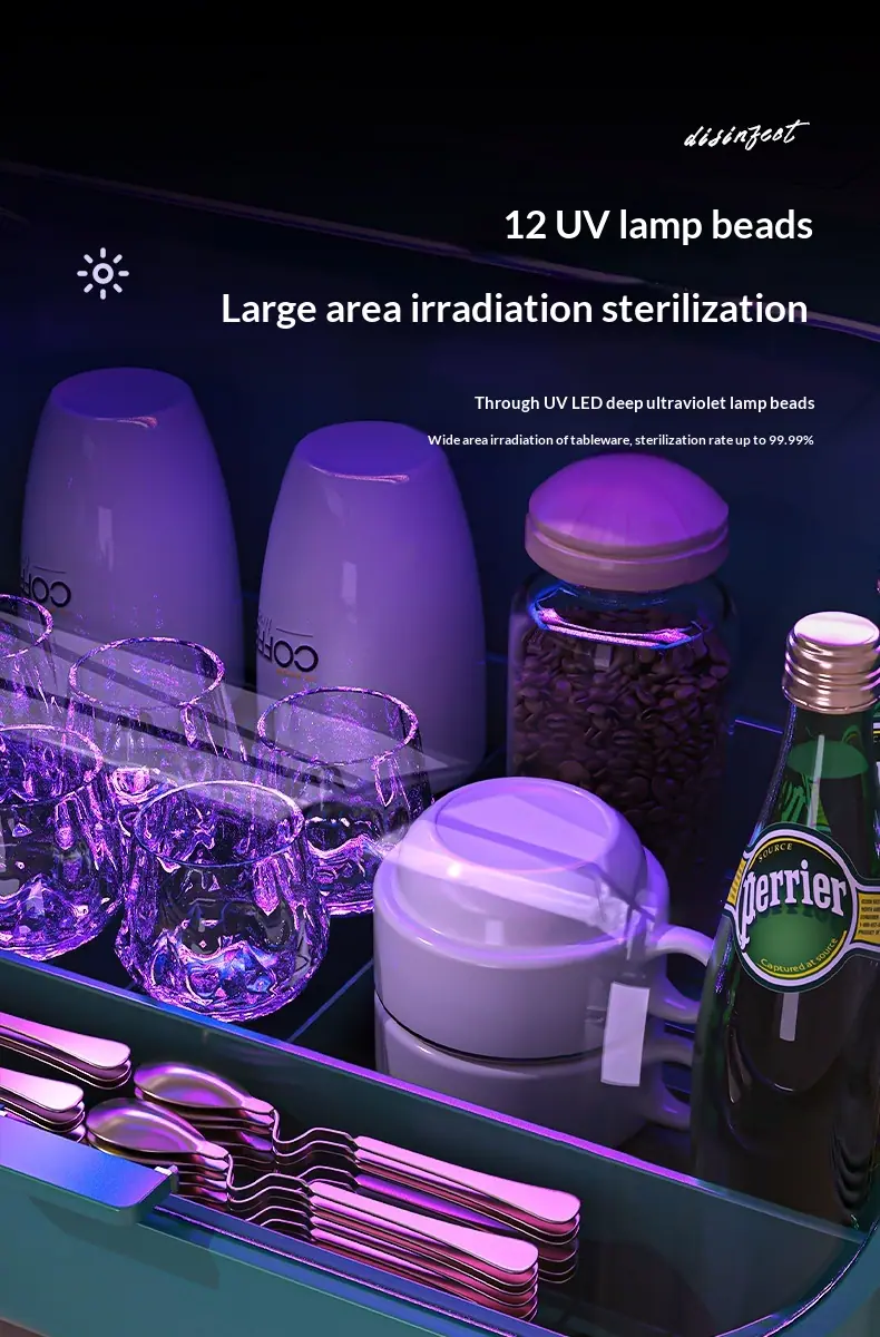 Desinfecção ultravioleta (estilo específico): Lâmpada de desinfecção ultravioleta embutida mata eficazmente bactérias comuns na superfície da louça, tornando a desinfecção mais segura.