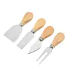 Faca e garfo de queijo de aço inoxidável, queijo, manteiga, pizza, cabo de carvalho, conjunto de quatro peças, cabo de plástico, ferramenta para queijo