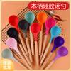 Colher de Silicone com Cabo de Madeira para Uso Doméstico, Utensílios de Cozinha Antiaderentes, Suprimentos de Cozinha, Colher de Cozinha de Grau Alimentar, Utensílios de Cozinha, Atacado a Pronta Entrega, Anti-Escaldante