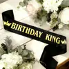Faixa de Rei de Aniversário para Homens Suprimentos de Decoração para Festa de Aniversário Letra de Folha Dourada e Faixa de Cetim Preto (Palavras Personalizadas)
