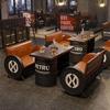 Bar Estilo Industrial Americano, Bar de Karaokê, Cabine Sofá de Ferro, Bar Taberna Criativo, Tambor de Óleo, Conjunto Completo de Mesas e Cadeiras de Sofá