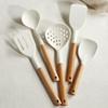 Utensílios de cozinha de silicone de fábrica, adequado para panelas domésticas, pás para panelas domésticas, escorredor, cabo de faia, panelas domésticas, pás