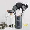 Cross-border em estoque barril de armazenamento de madeira punho silicone utensílios de cozinha 11 peças conjunto sete cores silicone utensílios de cozinha terno de 11 peças