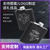 Novo cross-border preto aço inoxidável frasco de couro presente personalizado copo de vinho pequeno masculino 304 conjunto de frasco de quadril