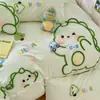 Conjunto de quatro peças de algodão com desenho animado fofo, roupa de cama de algodão primavera 2025, conjunto de três peças, lençol de cama têxtil para casa Nantong, capa de edredom