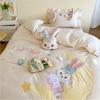 Conjunto Girly de Verão Fresco de Algodão Tencel de Quatro Peças Capa de Edredom Bordada com Coelho Fofo Roupa de Cama de Desenho Animado