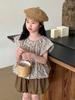 Roupas infantis comércio exterior meninas boneca saia 2020 verão meninas xadrez elástico manga bufante camisa camisa infantil camisa moda