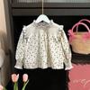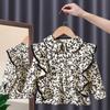 Roupas Infantis Novas de Primavera e Outono Estilo Ocidental Camisas de Meninas 2025 Camisas de Bebê Camisas de Boneca Infantil Floral Estilo Coreano