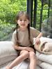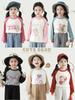 Wurib uma camiseta de contraste na altura dos ombros de uma menina 2024 outono infantil doce bonito desenho animado amigo da pele camiseta solta