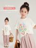 Camiseta infantil de algodão absorvente de suor 170G confortável e respirável para meninas camiseta verão 2024 novas letras casuais dos desenhos animados