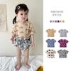 Ins Verão Bebê Short-sleeved T-shirt Bebê Menina Puro Algodão Meia-manga T-shirt Curta Thin Summer Dress Baby Boy Western-style Printed Top