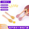 Silicone de Grau Alimentício Transfronteiriço Bebê Macio Garfo Colher Suplemento Alimentar Talheres Bebê Aprendendo a Comer Cabo de Madeira Garfo Colher Crianças Anti-Queda