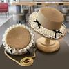 2021 Chapéu de Palha Infantil Fresh Wave Edge Summer Girl's Travel Beach Hat Sun Hat Cartoon Bag Set