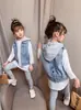 Tops Colete Jeans Primavera e Outono para Meninas Tamanhos Médio e Grande Crianças e Estudantes 2025 Top Jeans Fashion com Capuz Removível