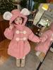 Jaqueta Quente de Algodão Enrugada com Manga Bolha Qiu Duo Meng para Meninas 2025 Inverno Nova Jaqueta Infantil Fofa de Algodão de Comprimento Médio