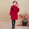 Casaco de Lã Feminino Casaco de Comprimento Médio 2025 Outono e Inverno Novo Estilo Algodão para Crianças Médias e Grandes Vermelho Estilo Chinês Roupa de Ano Novo
