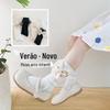 Meias infantis verão fino respirável primavera e outono algodão elástico não amarrar pés malha meias de renda princesa dança do laço