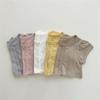 Verão meninas 'short-sleeved t-shirt bebê estilo ocidental infantil personalizado moda marca coreana estilo gelo seda cardigan cordão plissado top plissado