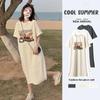 Maternidade 2022 Novo Verão Vestido de Manga Curta Blusa Solta plus size 100,00kg Saia de Comprimento Médio para Gestantes