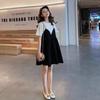 Novas roupas de maternidade de 2025, rede popular de verão, vestido falso de duas peças, costura, manga curta, comprimento médio, saia solta e doce