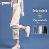 Calças Wide Leg Femininas Primavera e Verão Roupas Externas Gelo Seda Fina Calças retas retas para plus size Calças Femininas para Pequenas Gestantes