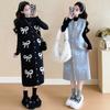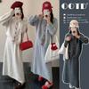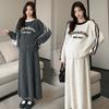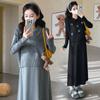 Mulheres Grávidas Outono e Inverno Novo Temperamento Francês Senso de Design Conjunto de Duas Peças Vestido Solto Plus Size Terno com Cintura Ajustável