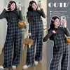 Roupa de Gravidez 2025 Outono/Inverno Novo Estilo Retrô Xadrez Clássico Versátil Macacão + Camada Base Conjunto Maternidade