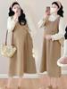 2025 Nova Moda Mãe Grávida Redução de Idade Temperamento Primavera e Verão Casual Calças de Alças para Grávidas Vestido de Maternidade Básico de Duas Peças