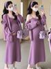 Conjunto Maternidade Novo Outono 2025 Casaco Tricotado de Alças Cor Pura Vestido Conjunto Maternidade de Duas Peças