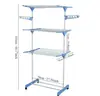 Varal de Roupa de Metal Moderno de 4 Níveis Retangular Dobrável com Rodinhas Cabide Secador de Chão Livre Organizador de Lavanderia Cinza/Azul