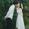 Vestido de Noiva Leve Super Fada Sonho Mori Fotografia de Viagem Fotografia ao Ar Livre Fio Fluido Branco Vestido Simples de Cetim para Mulheres Baixas