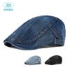 Boina Jeans de Algodão Lavado, Chapéu de Pintor Estilo Britânico Fashion, Boné Newsboy de Aba Curva Feminino, Boné Newsboy com Aba Curva