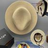 Um chapéu de palha simples e moderno, chapéu de palha de proteção solar estilo inglês adequado para viagens diárias, férias, turismo e brincadeiras.