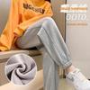 Outono e Inverno forrado de lã de esportes de rua ins Hong Kong estilo calças largas estilo casal feminino all-match drapeado calças retas casuais