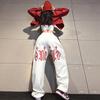 Fried street American letter, loose sports pants, women's casual ankle-tied pants, autumn and winter, cintura alta, calças de moletom retas na moda