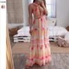 Novo Verão Transfronteiriço Amazon Roupas Europeias e Americanas Gradiente Decote V Profundo Multi-Alças Halter Splicing Assimétrico Vestido Estampado