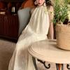 Novo Vestido Longo Romântico Ombro a Ombro Estilo Francês com Amarração, Sem Mangas, Halter, Alça de Renda, para Mulheres