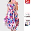 Vestido Europeu e Americano Transfronteiriço Amazon Ebay Decote Canoa Assimétrico Ombro a Ombro Manga Curta Estampa Digital