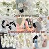Meias de renda de flor de cerejeira Big Head, meias femininas invisíveis de boca rasa, meias de algodão com fundo doce, meias de barco antiderrapantes e salto antiderrapante